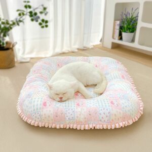USD$56.00 – USD$89.00S (45 * 45cm) (recommended within 1.25kg)M (55 * 55cm) (recommended within 2.5kg)L (65 * 65cm) (recommended within 7kg)Pink love bunnyGreen plaid lambBlack edge sweet kittenCoffee bib kittenCotton Pet Bed Set – Scratch-Resistant Dog & Cat Cushion with Lace Trim